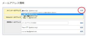 【5】登録済みのメールアドレスの変更や、メインメールアドレスの変更ができます。