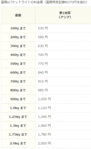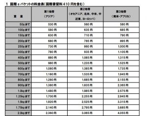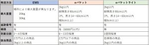 ちなみに、eパケットとeパケットライトは重量に対しての料金の幅が微妙に違っています。