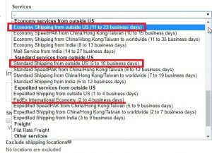 日本人セラーは「Economy」「Standard」の2つの発送方法しか対応できません。