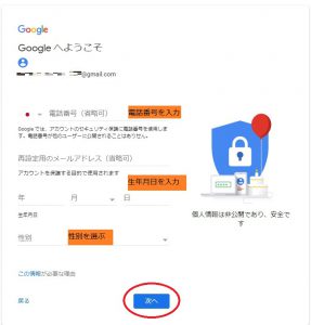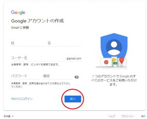 ・メールアドレスのメールアカウント名(****@gmail.comの***の部分)※新規作成する方のみ