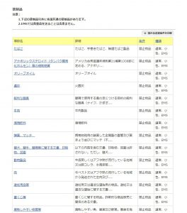 国によって、受け入れ禁止の商品が違います。